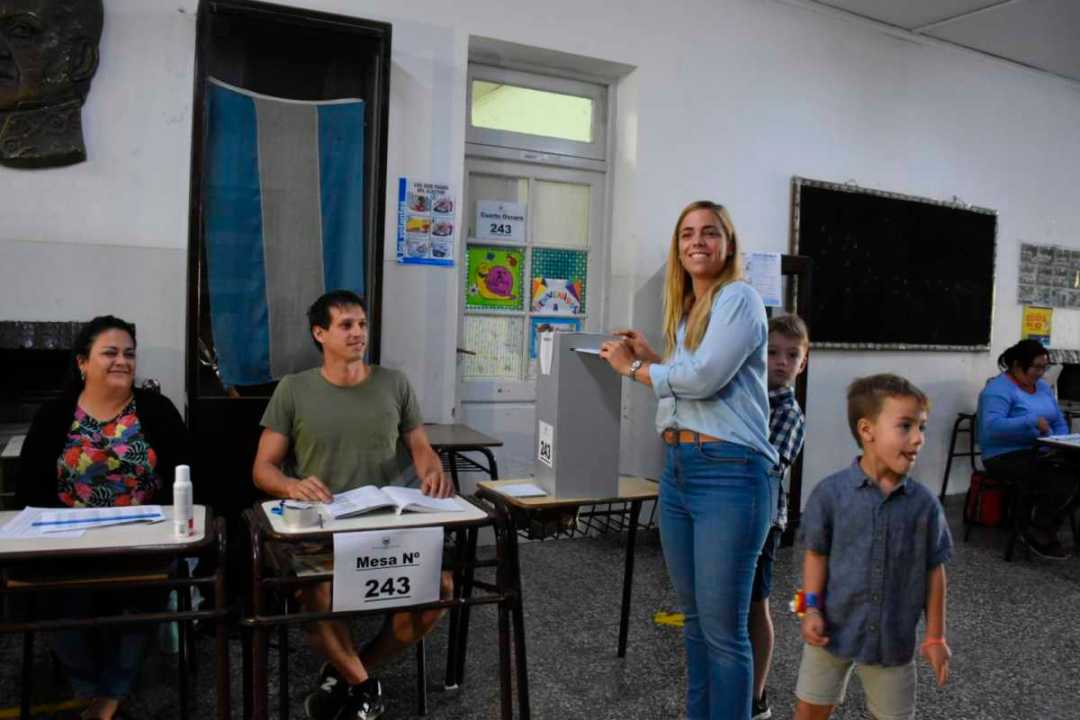La actual intendenta de Roca y candidata a su reelección por «Pasión por Roca» votó en la Escuela Nº 86. Llegó con sus hijos y con su cábala de camisa celeste.