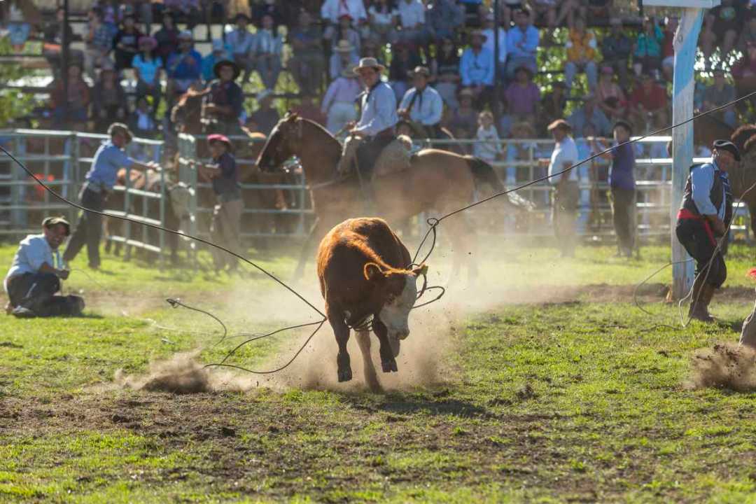 Luego fue el turno de la pialada, en la cual dos parejas de «enlazadores» intentan atrapar a un ternero con sus lazos desde distintas posiciones en el campo. El término proviene de “pialar”, que significa amarrar las patas.
