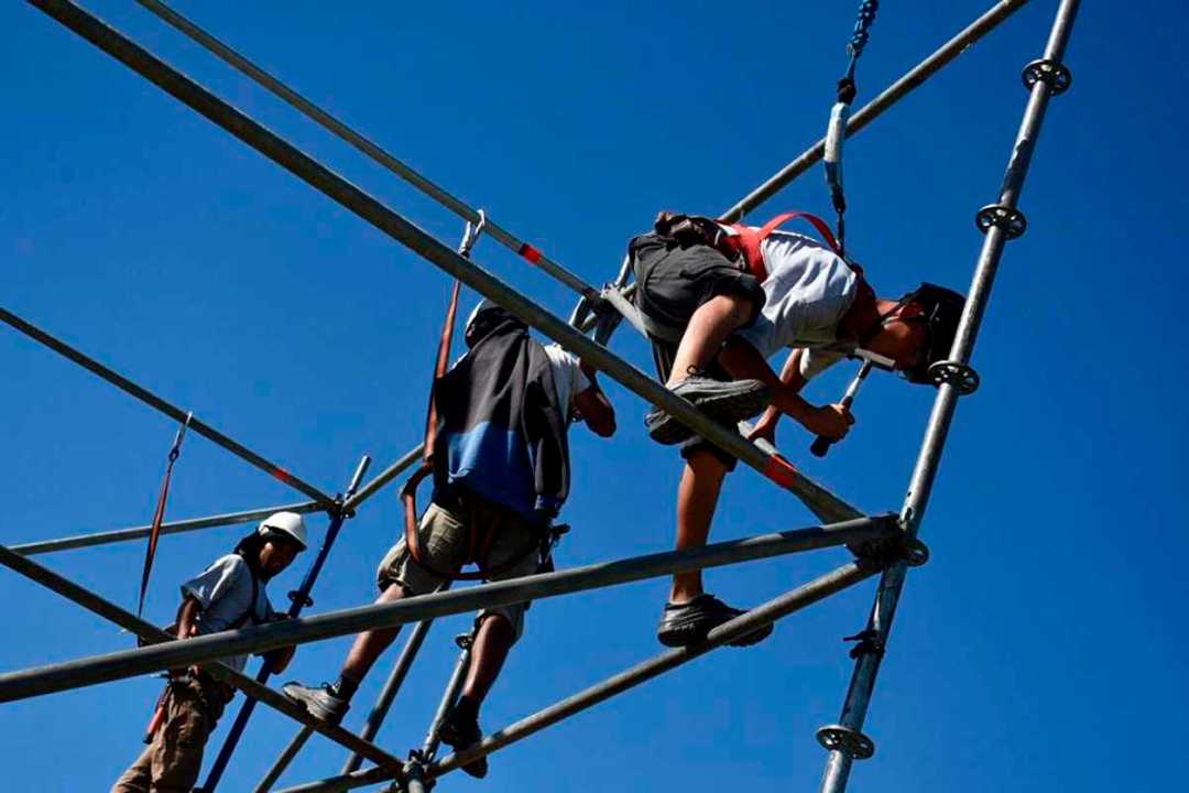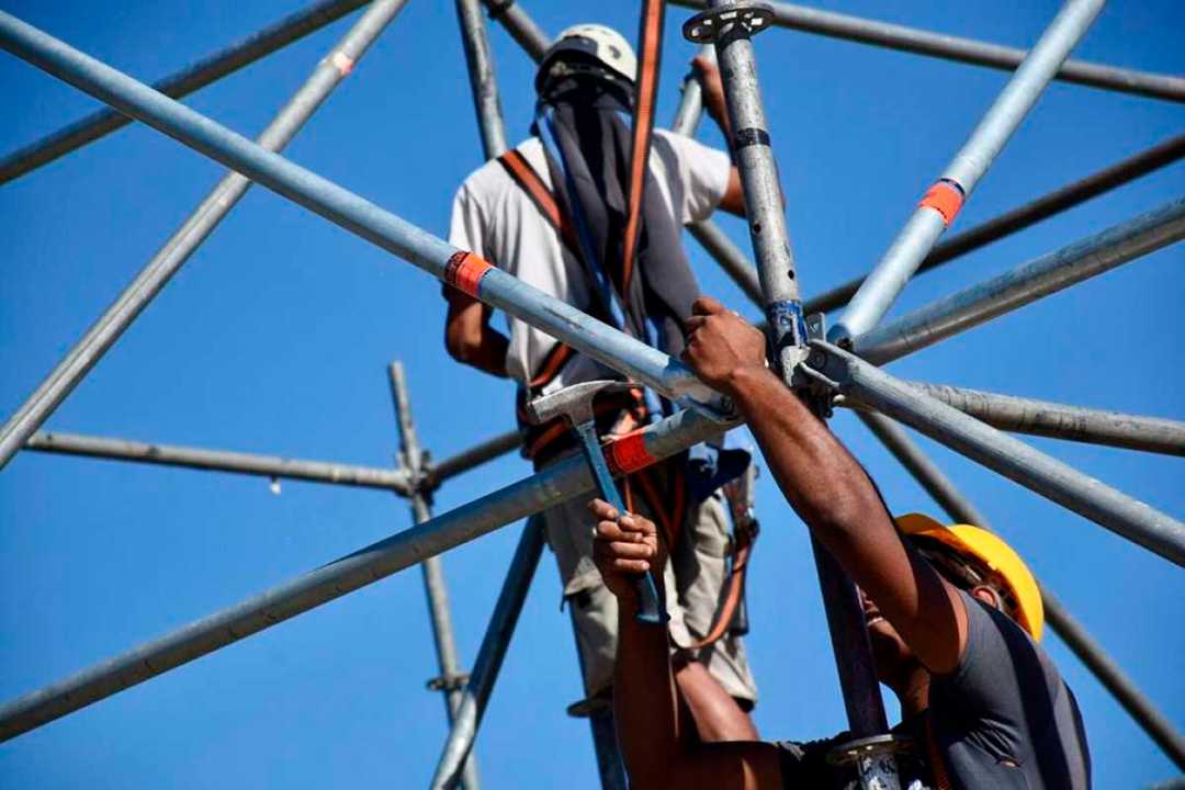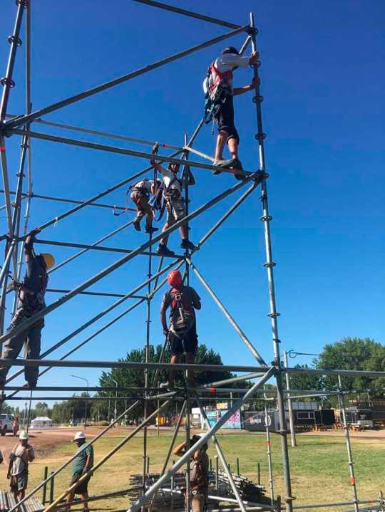 Mirá a los intrépidos obreros armando el escenario de la Fiesta de la Confluencia