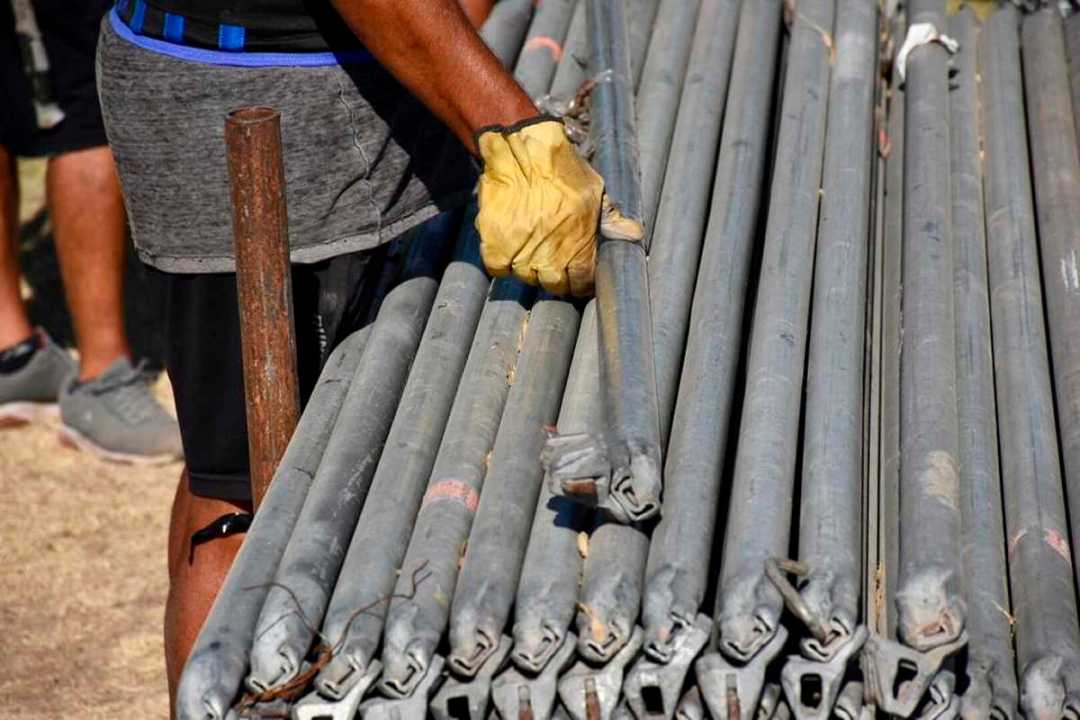 Los pliegos de la licitación pública para la estructura, determinaron que el sistema de armado sea “Layher” (no requiere tuercas ni tornillos). Debajo de la mega estructura, se colocaron 36 piletones de 1.000 litros de agua cada uno.