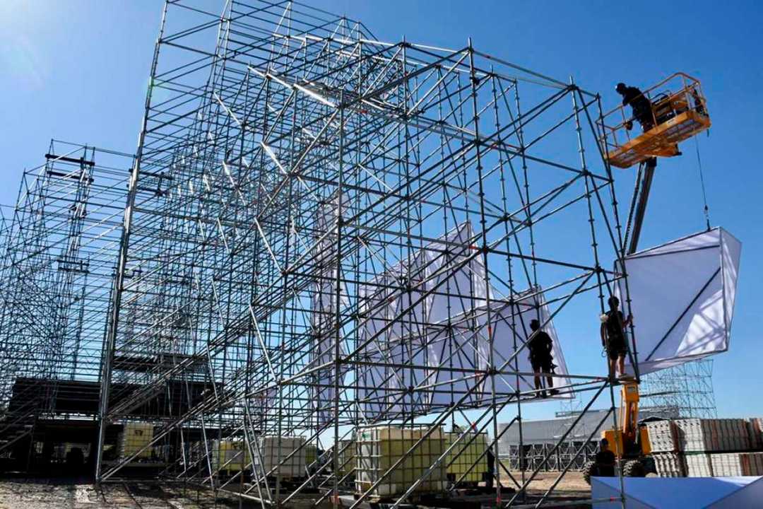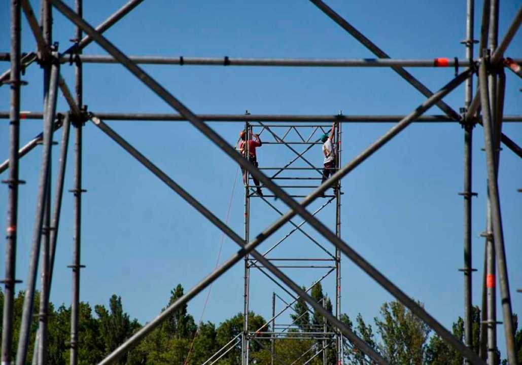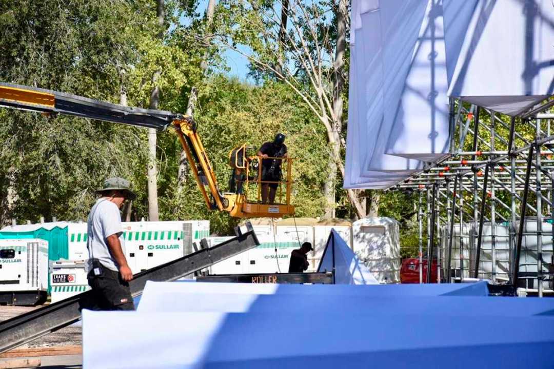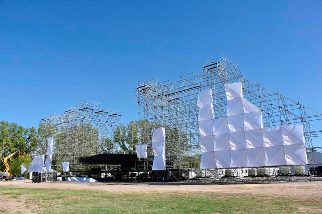 Los obreros trabajan en los armados y las primeras piezas montadas ya anticipan las dimensiones imponentes que tendrá el escenario principal, en donde se presentarán reconocidos artistas nacionales e internacionales.