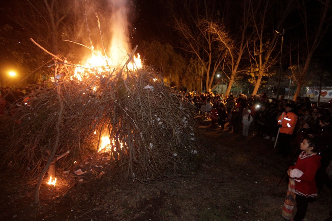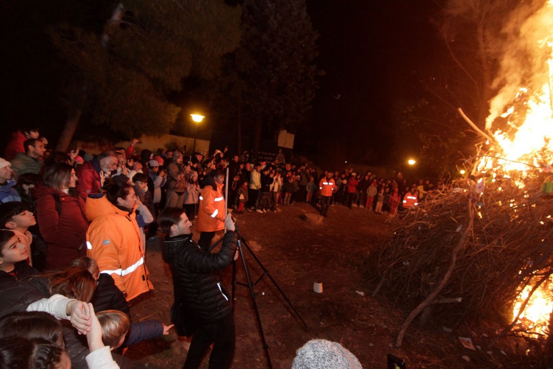 Pero el momento más especial de la jornada se dio recién a las 20:45, cuando se encendió la fogata que no tardó en ganar impulso sobre la pila de ramas secas. Todo ante la atenta mirada de la gente, reunida en familia o con amigos.