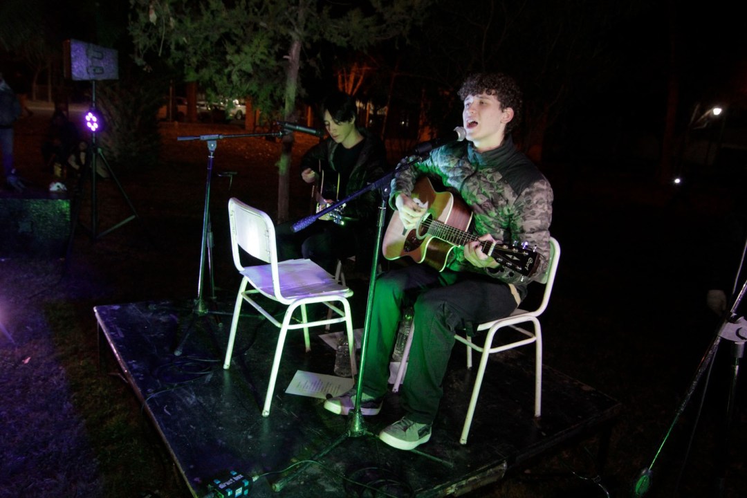 Con el correr de la tarde y el decidido avance de la noche, poco a poco los vecinos fueron llegando a la plaza José Luis Fontela. El encuentro, los números musicales y los primeros choripanes, aportados por el barrio, ayudaron a pasar el frío, otra vez protagonista este viernes.