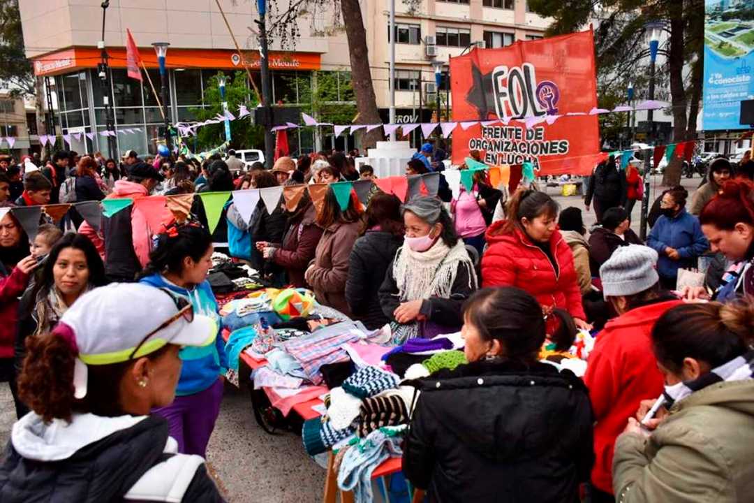 El Frente de Organizaciones en Lucha armó una feria en el centro, donde ofreció a quienes pasaban su trabajo en los barrios.