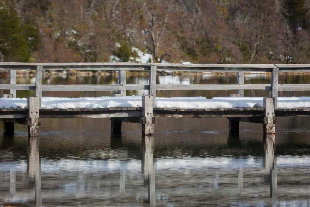 Algunos metros más, el camino cerrado por el bosque y la nieve en abundancia, nos llevó hasta la laguna pudu pudu, congelada y cubierta de nieve en sus orillas, faltaba poco, pero bastante “peludeado” el trayecto para llegar al muelle.