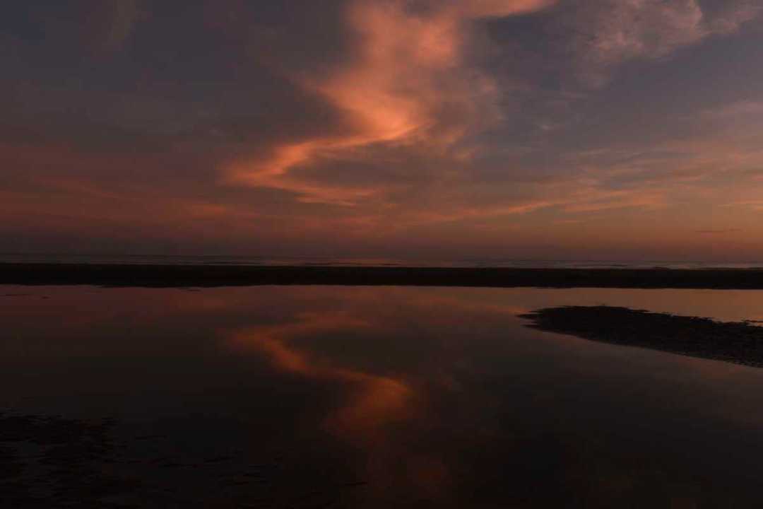 Aún muchas nubes de la tormenta vagaban en un atardecer mágico y los pocos rayos de luz que se filtraban pintaban de un color rojo el cielo patagónico. Lindo momento para retratar.