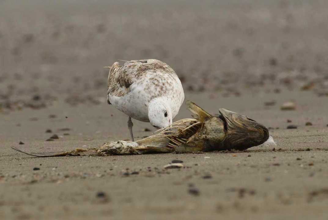 Pero las sorpresas del día tormentoso no dejaban de maravillarme: a unos pocos metros, un pescado que hallaron en la playa fue el manjar de las gaviotas que desfilaban para poder comer un trozo.