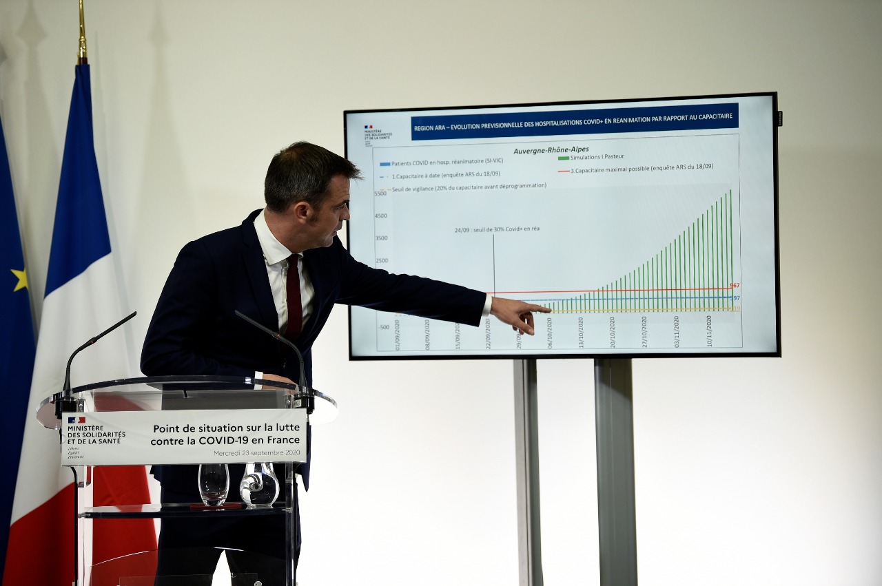 El ministro de Salud, Olivier Veran, anunció que París y otras diez ciudades fueron puestas en «alerta reforzada» por los contagios, lo que implica que los bares cerrarán a las 22.00 a partir del lunes.