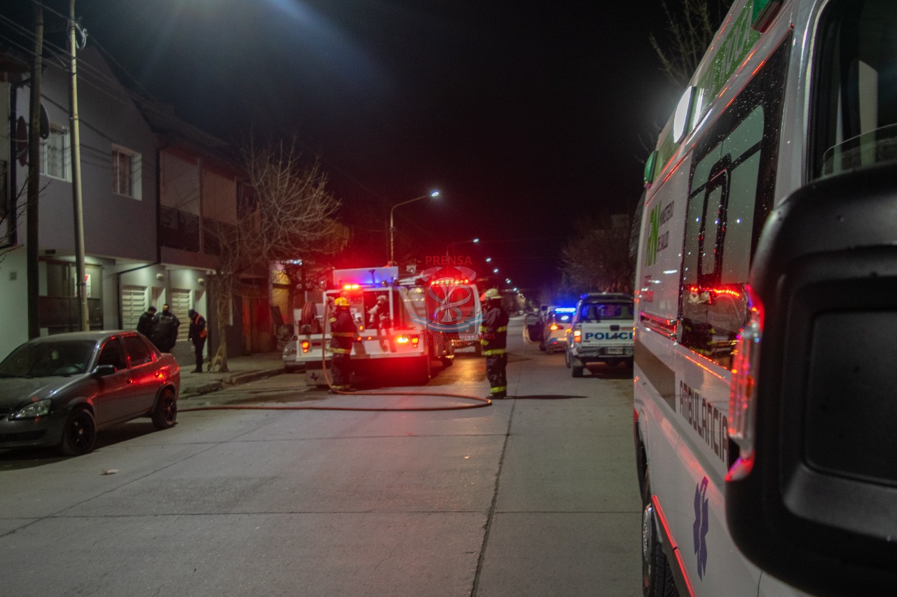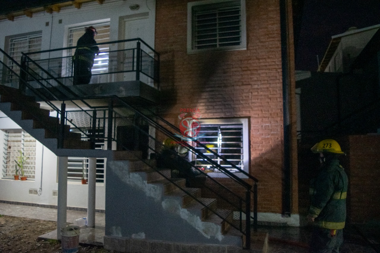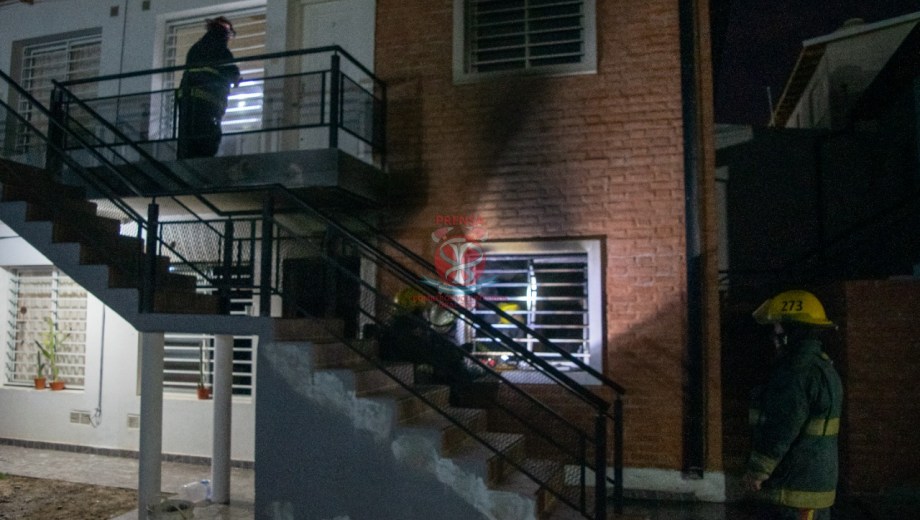 Hasta el lugar se desplazaron dos móviles del cuartel central de Bomberos Voluntarios, quienes se encontraron con un incendio en un complejo de departamento y que las llamas afectaban a uno de los núcleos habitacionales.