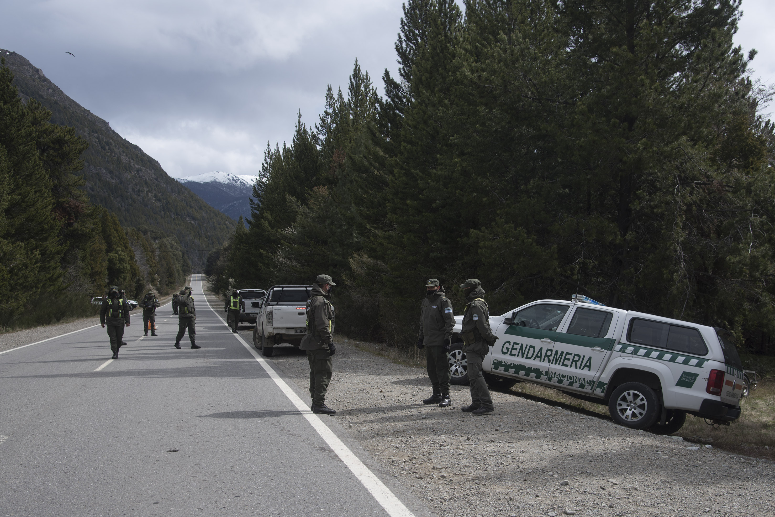 Los organizadores de la movilización había aclarado que no tenían intenciones de avanzar hacia Villa Mascardi. De todos modos, casi 20 gendarmes se apostaron en el puesto de control, ubicado en ese punto de la ruta nacional 40 Sur, a unos 15 kilómetros de la zona del conflicto.