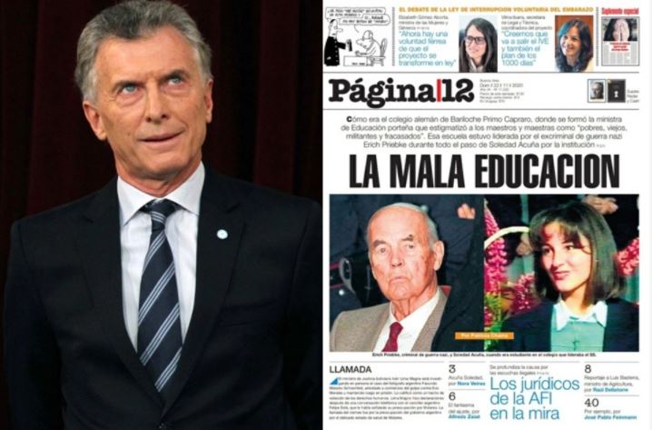 El ex presidente Mauricio Macri y el jefe de Gobierno de la Ciudad de Buenos Aires, Horacio Rodríguez Larreta salieron hoy en defensa de la ministra de Educación porteña, Soledad Acuña, y denunciaron «ataques personales y falaces» contra la funcionaria. «Vergonzoso. Esta tapa y esta historia no tienen nada que ver con el periodismo y dañan a la democracia. Mi solidaridad y apoyo a la ministra de Educación de la Ciudad de Buenos Aires, Soledad Acuña», escribió el ex presidente Mauricio Macri en su cuenta de Twitter, en referencia a una nota donde se hace referencia a la escuela a la que asistió la ministra.