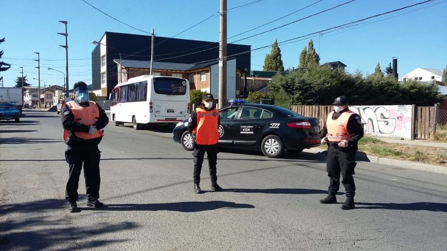 En la sucursal del banco Patagonia de calle Onelli la fila se extendía por solo 30 metros y no se respetaba la distancia mínima sugerida de 1,5 metros. En esta entidad no había control policial más que el personal habitual de la Policía de Río Negro que desde la puerta permitía el acceso una vez que se retiraba alguna persona.