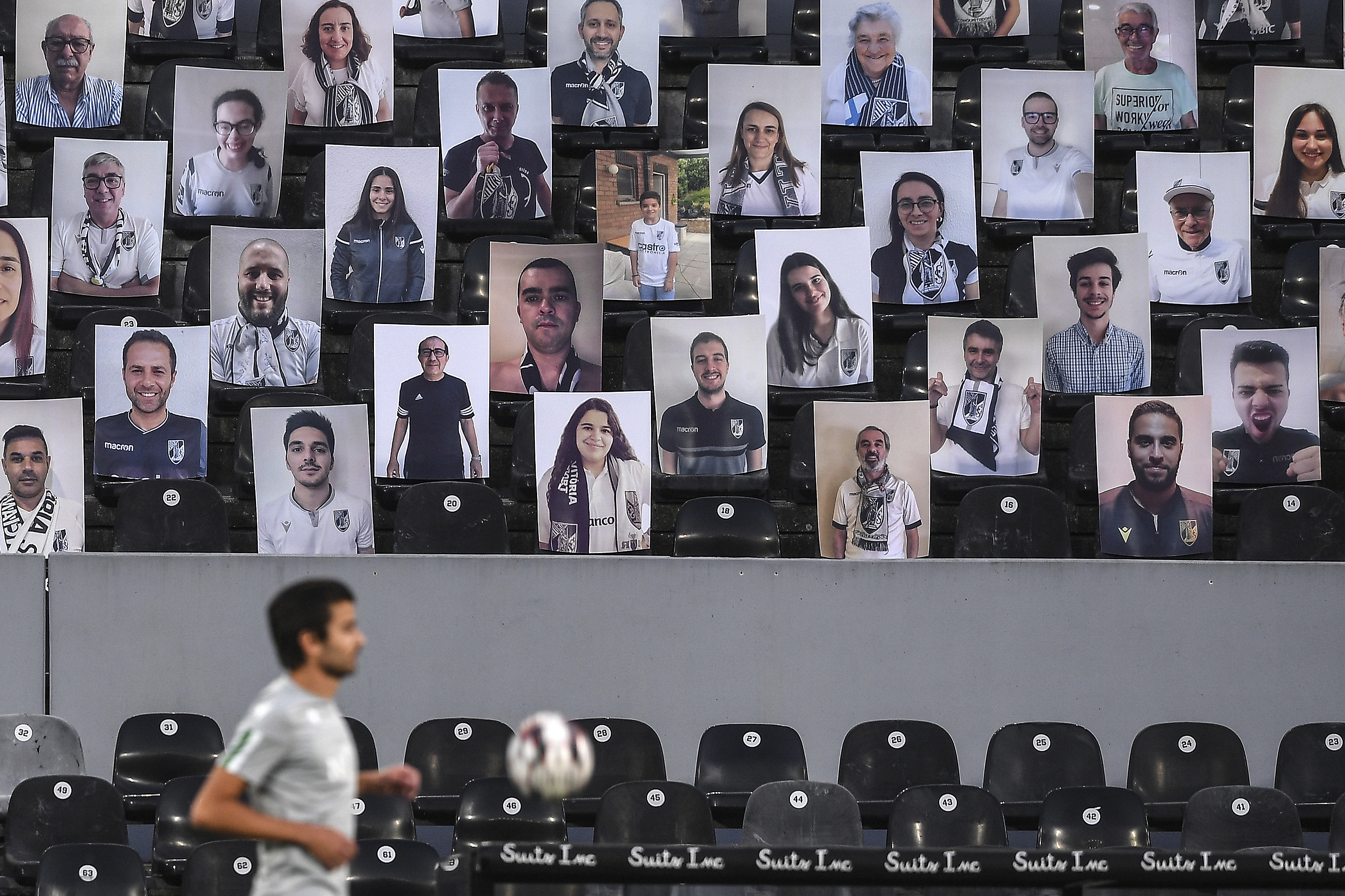 En la cancha del Vitoria Guimaraes ante el Sporting de Lisboa, en el reinicio de la liga de Portugal, se vieron este tipo de imágenes en las tribunas. (Foto/AP)