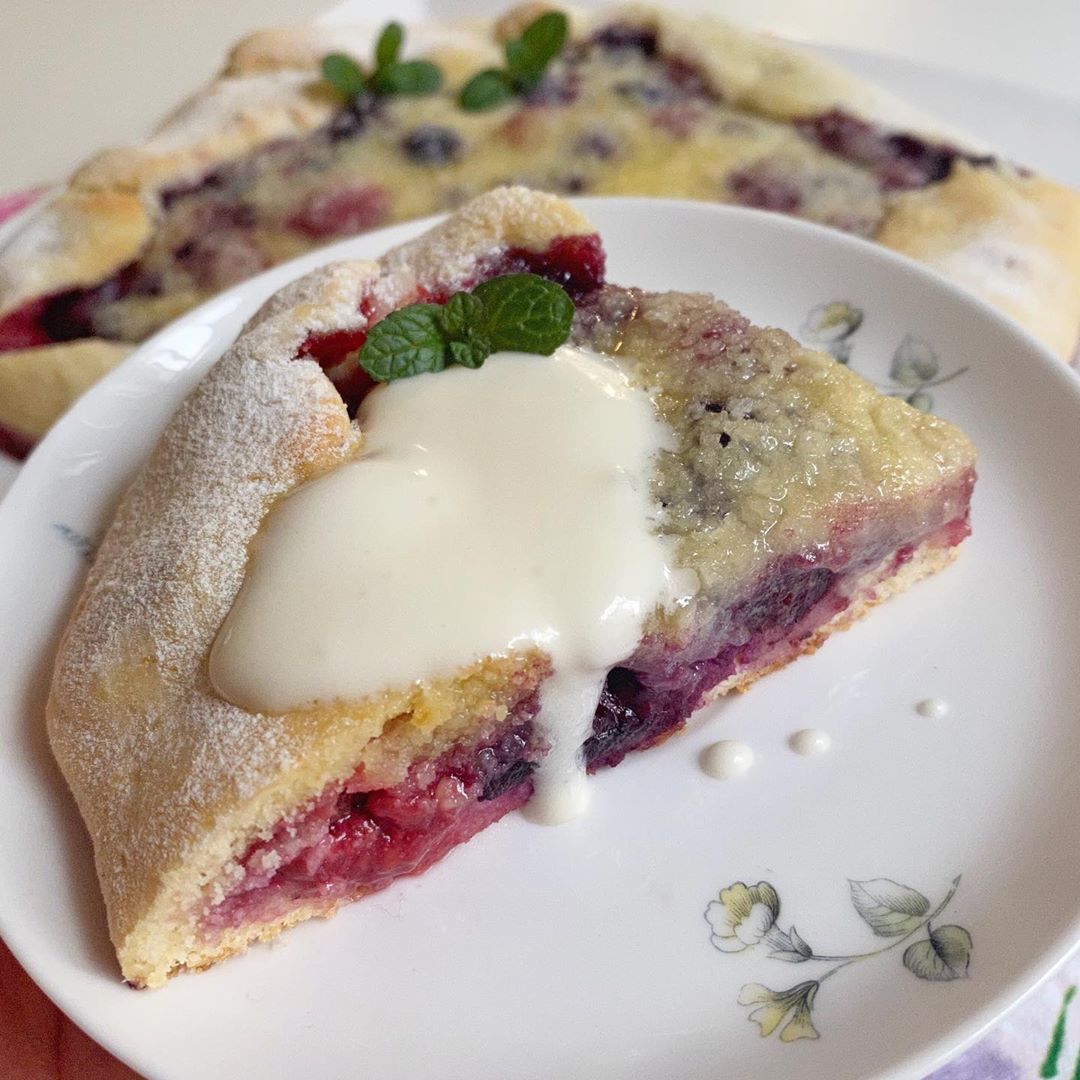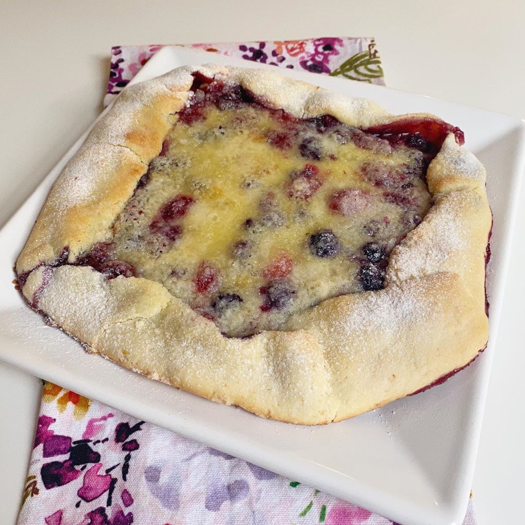 Tapar y llevar a la heladera por 1 hora. Estirar con palote sobre papel manteca (y un separador film por arriba) y colocar en el centro los frutos rojos o la fruta que elijan, y doblar los bordes hacia adentro.
