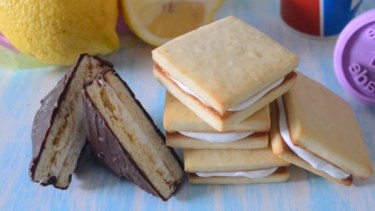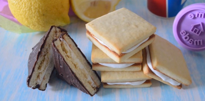 Para el relleno mezclar la clara de huevo con el azúcar y el jugo de limón. Rellenar las galletitas. Opcionalmente se pueden bañar en chocolate.