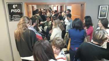 Esta mañana, un nutrido grupo de empleados de la Justicia, liderados por los dirigentes de Sitrajur, Pablo Barreno y Adriana Saber, ocuparon el sexto piso de la Legislatura. En su despacho ya estaba el vicegobernador Pesatti con otros integrantes de Labor, como Alejandro Palmieri (Juntos), Alejandro Marinao y Ariel Rivero, del FpV; Soraya Yahuar de la UCR y Mario Sabbatella (FRN). El oficialista Facundo López no pudo llegar a la reunión.
