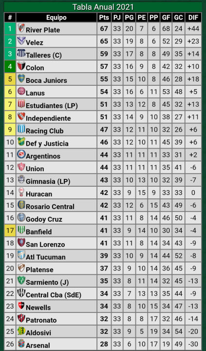 – Se clasifican a la Sudamericana 2022 del sexto al noveno de esta Tabla Anual. Ya están Banfield y Boca.