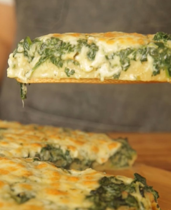 Animate a probar fainá gratinada con mozzarella y espinacas