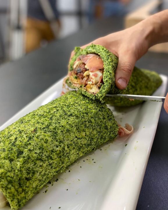 Arrollado de espinacas, muzzarella y tomate