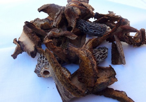 Primero se pone a hervir el vino, cuando rompe hervor, se ponen a hidratar los hongos y se reserva.