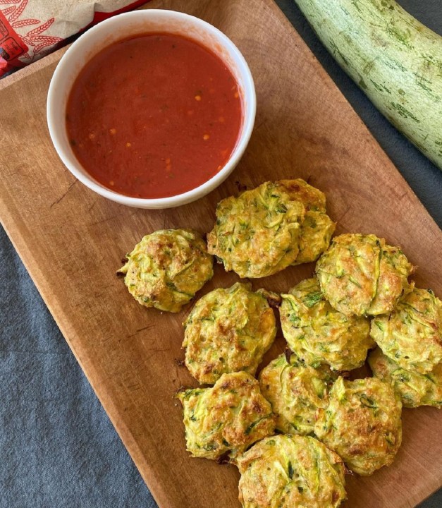 Para los bocaditos: rallar los zucchinis. Escurrirlos bien y colocarlos en un bol. Agregar los huevos, los quesos, la cucharada de pan rallado y condimentar.