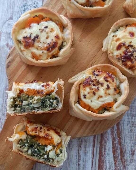 Canastitas de acelga, ricotta, calabaza y queso