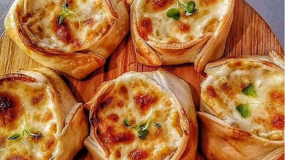 Cocinar a fuego bajo por 15 minutos, si se seca agregar un poco de leche. Terminar con la parte verde picada de la cebolla de verdeo. Armar canastas con tapas de empanada, rellenar, rallar mozzarella por encima y hornear hasta que gratine.