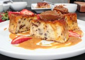 En el momento de servir, espolvorear con una capa de la mezcla de azúcares y quemar con un soplete, plancha caliente o bajo el calor de un grill. Hasta que el azúcar se funda. Servir de inmediato.