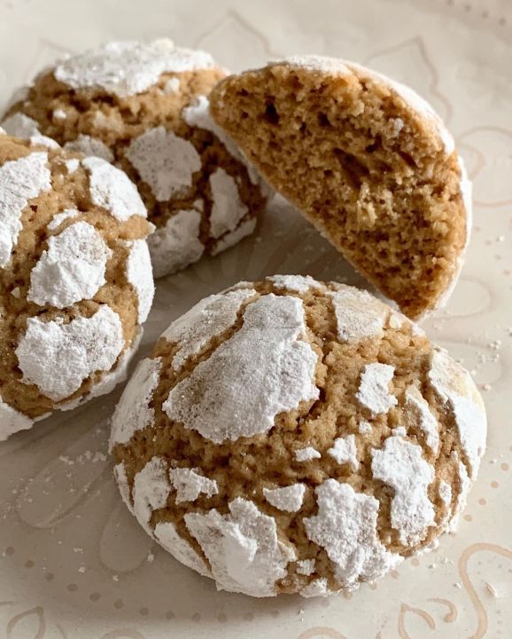 Hacer bolitas del tamaño de una cuchara y pasarlas primero por azúcar común y después por azúcar impalpable. Colocar en placas distanciadas unas de otras y cocinar entre 15 y 18 minutos hasta que se extiendan y se asienten lo bordes. Una vez frías conservar en recipientes herméticos.