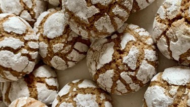 Hacer bolitas del tamaño de una cuchara y pasarlas primero por azúcar común y después por azúcar impalpable. Colocar en placas distanciadas unas de otras y cocinar entre 15 y 18 minutos hasta que se extiendan y se asienten lo bordes. Una vez frías conservar en recipientes herméticos.