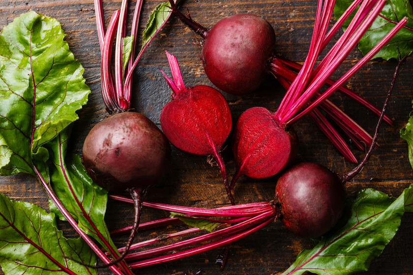 Remolacha: Con propiedades antiinflamatorias, la remolacha es beneficiosa para la salud cardiovascular, ayudando a reducir la presión arterial y aumentar el flujo sanguíneo. Contiene fitonutrientes y vitaminas A, C, K y B9.
