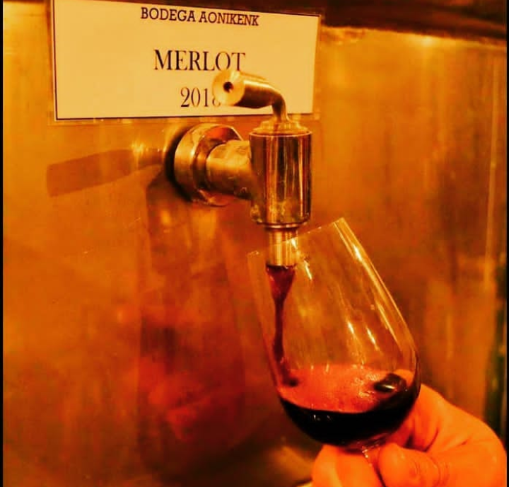 Mientras que Gaspar Rastrilla, enólogo, se encuentra fraccionado los vinos de las líneas nuevas, imagina posibles formas de dar a conocer el universo de enología. En la zona rural de la ciudad de Fernández Oro, en pleno corazón del Alto Valle donde aún suceden actividades de producción primaria, se encuentra la bodega Aonikenk. Allí y desde hace 22 años, se cuidan año tras año viñedos de uvas Merlot, Malbec y Cabernet Sauvignon, principalmente. La bodega se caracteriza por tener una pequeña producción con alta calidad en sus vinos.