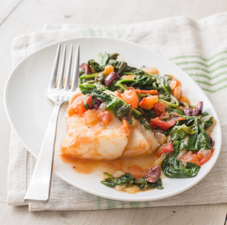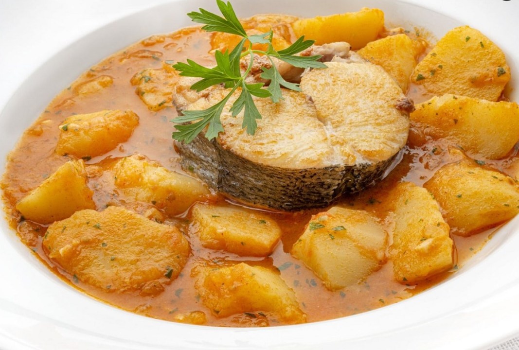 3. Servir con la piperada debajo de la merluza y las papas hervidas.