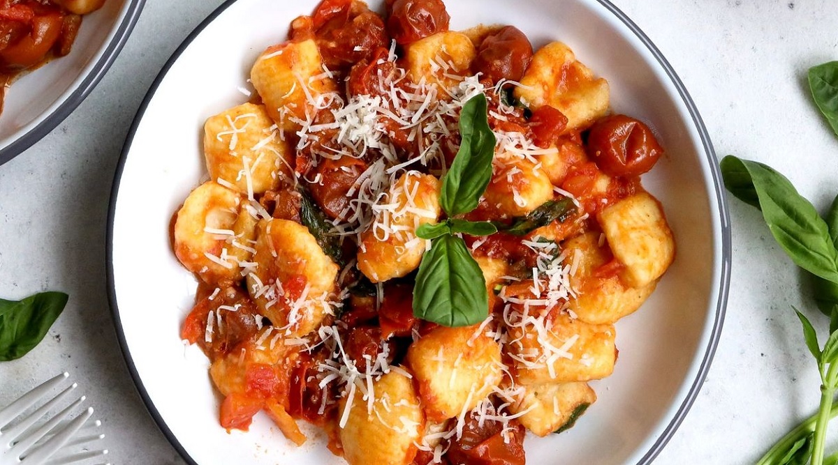 LUNES: Ñoquis de papa salteados en aceite de oliva con tomates cherry, albahaca y ajo