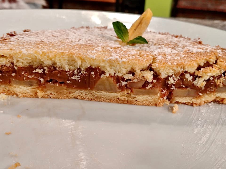 Para la cobertura, también mezclar todos los ingredientes y esparcirlos sobre el dulce de leche. Llevar a horno 170° C por 30 minutos o hasta que esté dorado.