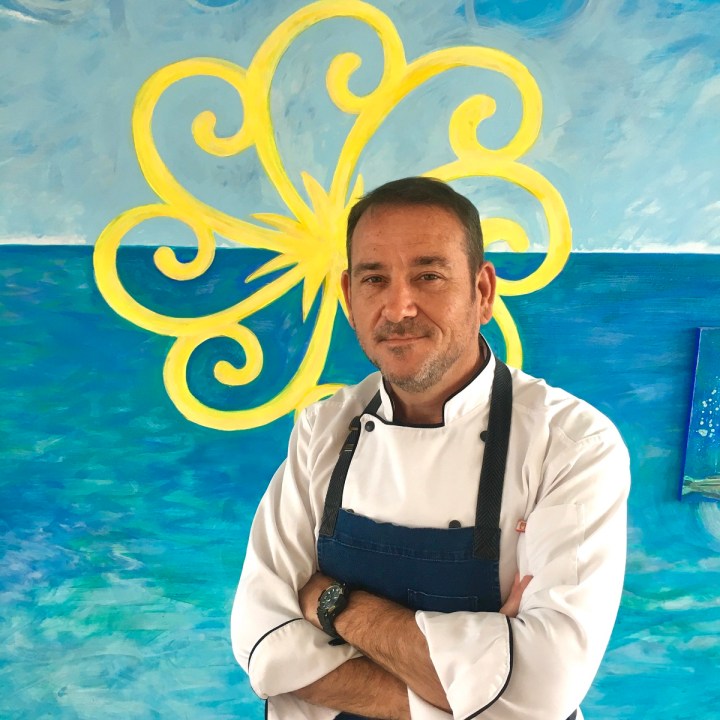 Cremoso de arroz y mariscos, perfume de limón y jengibre
