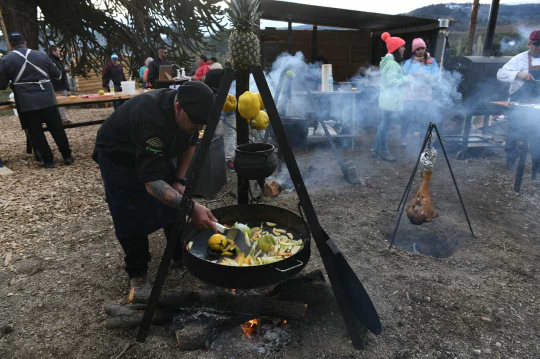 Al festival ya no le falta nada más. Por qué decimos esto. Porque la cocina de los pueblos originarios este año tiene una presencia notoria en la zona de los fuegos, en la Terraza Rústica, que tiene vista a una laguna y al Volcán Batea Mahuida. La comunidad mapuche Puel cocina costillar de asado con cuero, guiso de mondongo, mote y sopa piñonera, todo potente para vivir mejor el tiempo fresco que corre por acá. ¿Qué más pidió la gente en la primera jornada en este puesto? El locro al K´chral, que tiene costillas de chivo, zapallo, porotos, maíz pisado, salchicha parrillera, panceta ahumada y cantimpalo.