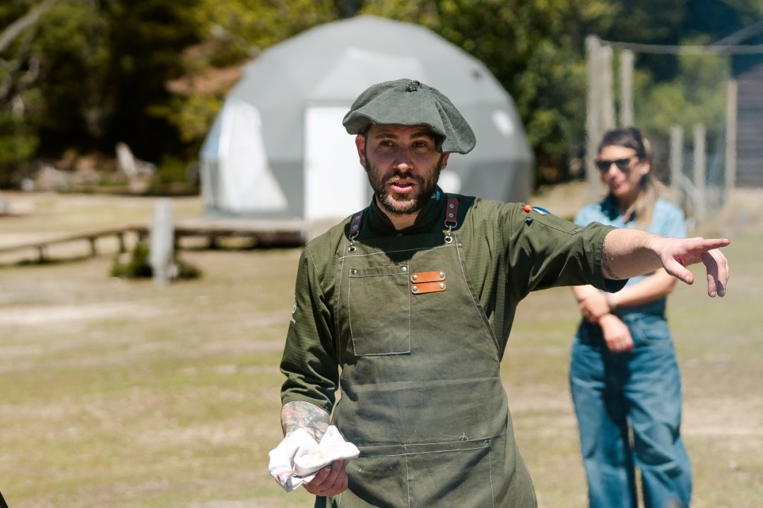 «Vamos a presentar unas croquetas de chivo braseado, con una pasta de tomates secos ahumados y el crujir de batatas pay. Es un bocado que intenta traducir un paisaje: la rusticidad de la estepa transformada en una textura sedosa y elegante”, comenta Iizaguirre. “Todos los cocineros presentes en este evento, en mayor o menor medida, alineamos nuestras propuestas al concepto de territorialidad y lo que significa una expo rural acá en la cordillera”, sostiene.