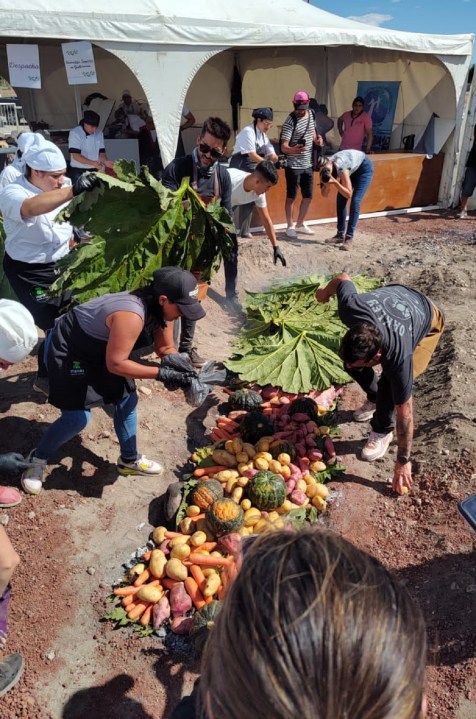 La segunda práctica del año, fue en el Campeonato Nacional de Asadores a la Estaca, el 10, 11 y 12 de marzo. Una de las participaciones fue la elaboración de curanto. “El curanto es una comida ancestral de la zona de la araucanía. De esta manera se genera un valor agregado con nuestros productores locales. Se realiza en una fosa, recubierta de piedras bochas, se hace bastante fuego para que las piedras estén calientes. Luego, se colocan hojas de nalca, una planta que conserva el calor y ayuda a su cocción. También se incorpora la carne ya condimentada (cordero, chivo, pavo, chorizos, novillo), papa, batata, zapallo cabutia y zanahoria. Se cubre nuevamente con hojas de nalca y con un lienzo para que proteja los ingredientes de tierra y ayuda a conservar la temperatura. Por último, se cubre con tierra y se mantiene con fuego y brazas moderada por 6 horas para una cocción pareja. Los ingredientes están en su punto justo. Las carnes tiernas y las verduras al dente. Generalmente se acompaña de una salsa criolla y pebre de piñón”, comparte Jorgelina.