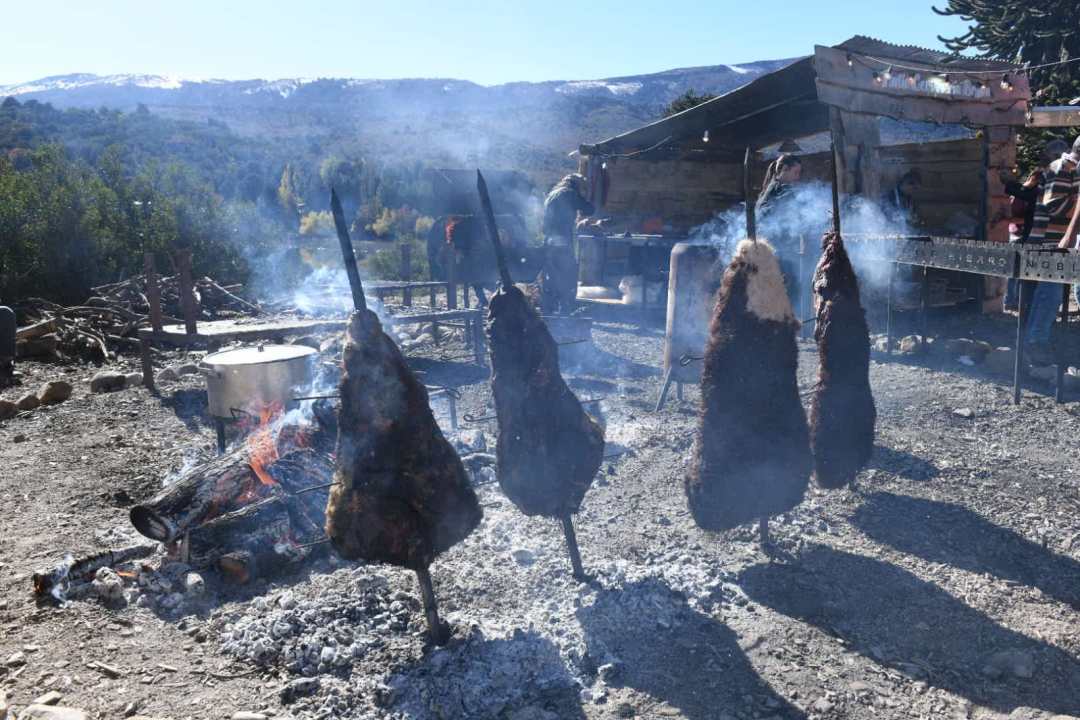 Pastel de choclo y queso con escamas de papas, bondiola ahumada a la cerveza, asado con cuero en pan, pavita ahumada en sándwich, verde y mayonesa de moras, brochetas de cordero a las braas con verduras, hojas verdes y salsa pesto con piñones, provoleta a la plancha, ceboola, tomates confitados y salsa de rosa mosqueta.