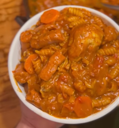 Dejamos cocinar unos 25/30 minutos, agregamos la salchicha parrillera cortada. Cocinar unos 15 minutos más. Al final de la cocción agregamos la pasta seca hasta que se cocine y a disfrutar.