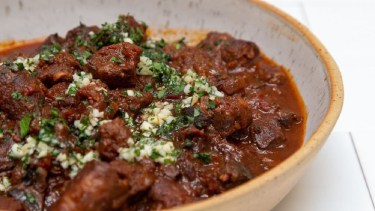 5. Tapar la cacerola y dejar que hierva despacio, hasta que la carne esté cocida y bien tierna. La salsa debe resultar algo espesa.