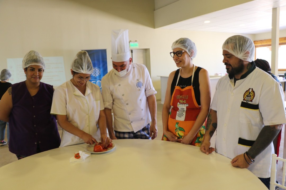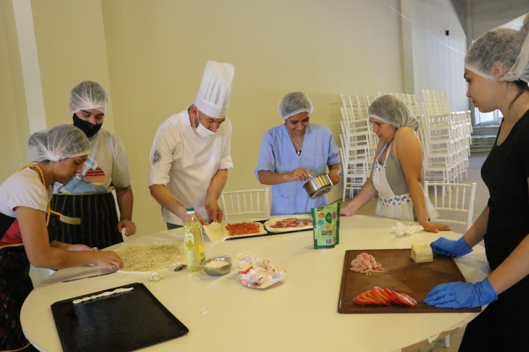 El chef Gustavo Passaniti, docente y secretario de Extensión de la Facultad de Ciencias y Tecnologías de los Alimentos (FACTA), encabezó las prácticas, junto a la vicedecana de la Facultad y licenciada en Tecnología de los Alimentos, Ivanna Milanesi. En ocho grupos de 20/25 participantes, a lo largo de viernes y sábado, amasaron y le dieron forma a pizzas, calzones y grisines, con eje en las buenas prácticas en la manipulación de alimentos, conceptos incorporados a lo largo de los dos últimos meses en los encuentros virtuales y las prácticas presenciales.