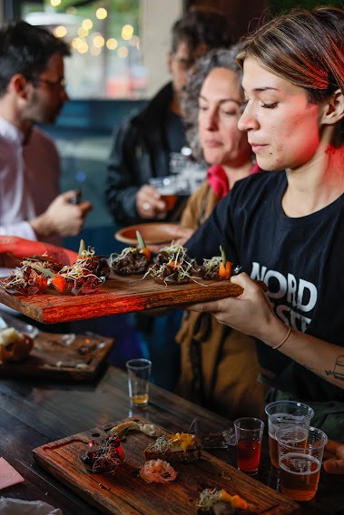 Entre las delicias que se pudieron degustar se destacaron los mini croissant con hongos y queso de Chacra Hummus, trucha ahumada, kombucha envuelta en hojas de repollo con morillas ahumadas, además del cordero embutido en pan de viena con yogurt y menta, pejerrey patagónico curado en pan de centeno, emulsión de garum, lomos de liebre con gremolata en tacos, causa de caza, cuartos de liebre confitados, ciervo envuelto en hojas de parra y pastrone.