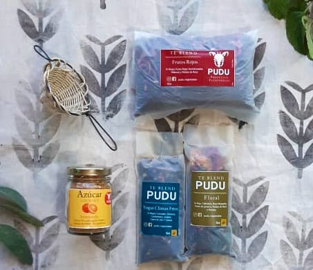 Hace 10 años Melina vive en la Comarca Andina. Allí, donde las ciruelas se juntan del piso, al pie del frutal, experimentó dos nacimientos: Evaristo, su hijo y Pudú (@pudu.regionales) su emprendimiento de blends de té y condimentos. De recuerdos de abuela, de infancias en el campo, del deseo de querer contribuir con propuestas alimentarias más sanas para la población, se fue gestando Pudú.