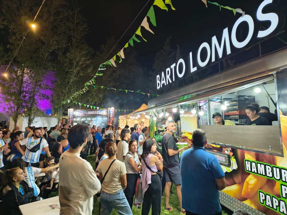 Durante la tarde y la noche, el predio se transformó en un punto de encuentro para quienes buscan sabores regionales y productos artesanales. Además de los stands de emprendedores, el público también encontró foodtrucks con distintas opciones para comer en el lugar: lomos, hamburguesas, sándwiches, medialunas, panchos con papas fritas y otras propuestas rápidas para acompañar el recorrido.