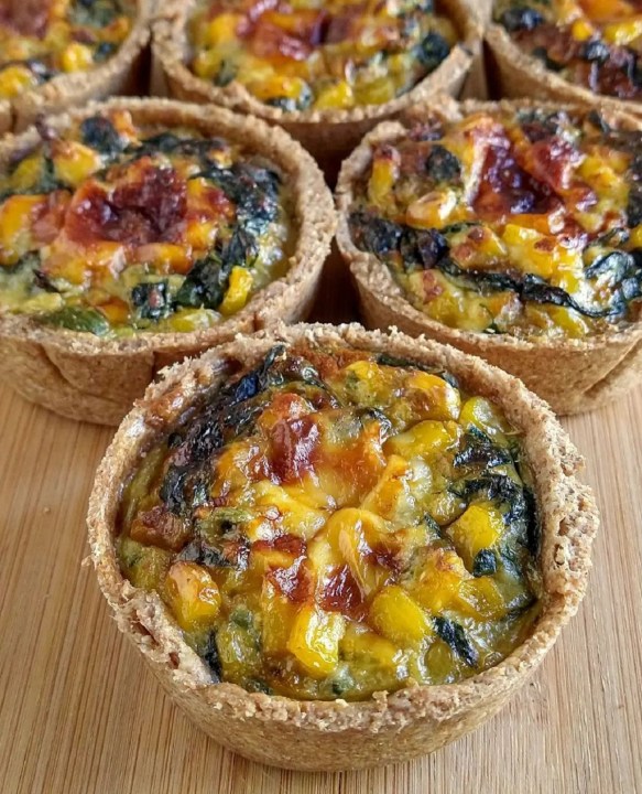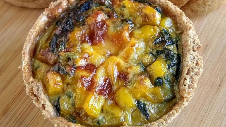 Picar cebolla y rehogar en sartén con un chorrito de aceite. Salpimentar. Agregar la espinaca y el choclo y dejar cocinar unos minutos. Apagar el fuego y reservar. Para el ligue, mezclar queso crema y huevos. Agregar la espinaca y choclo rehogados. Colocar la masa en moldes para mini tartas y rellenar. Agregar también un cubo de queso en el centro de cada una. Llevar a horno moderado y precalentado (170° C) hasta que coagule el ligue y se dore.