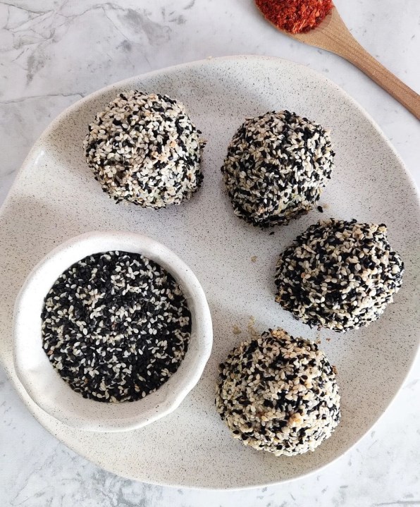 3. Pasar las bombas por huevo apenas batido con un tenedor y luego por el mix de semillas.