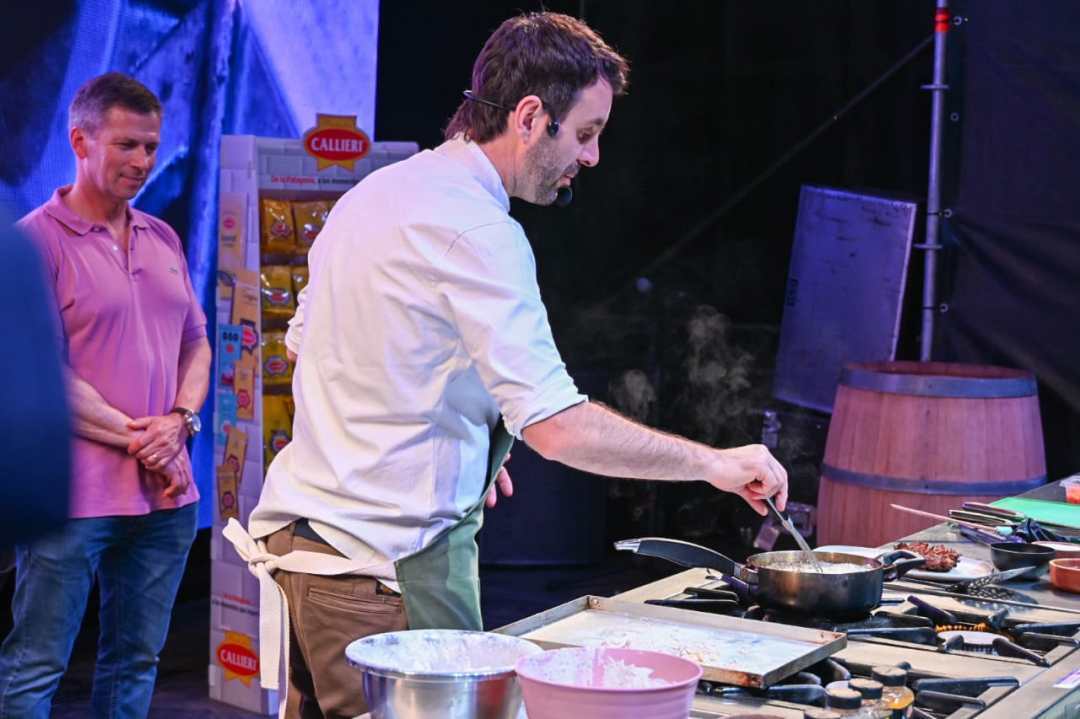 El chef desplegó su conocimiento y simpatía para dar una clase de cocina al público presente. Mañana cierra Ximena Saenz.