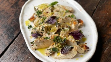 Paillarde de pollo marinado con vinagreta de miel y ciboulette by Juliana López May
